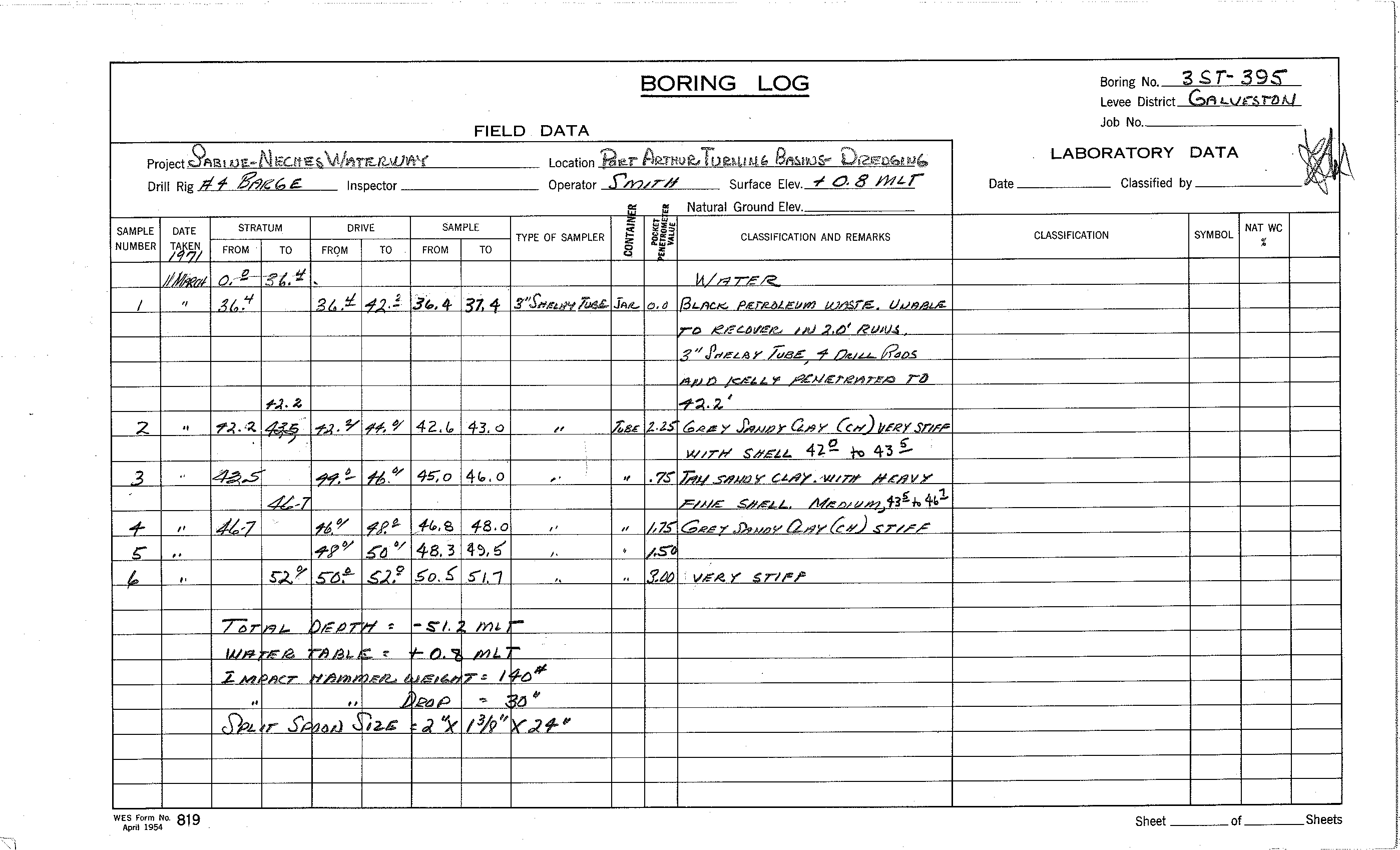 ELEVATION TOP BORING ____