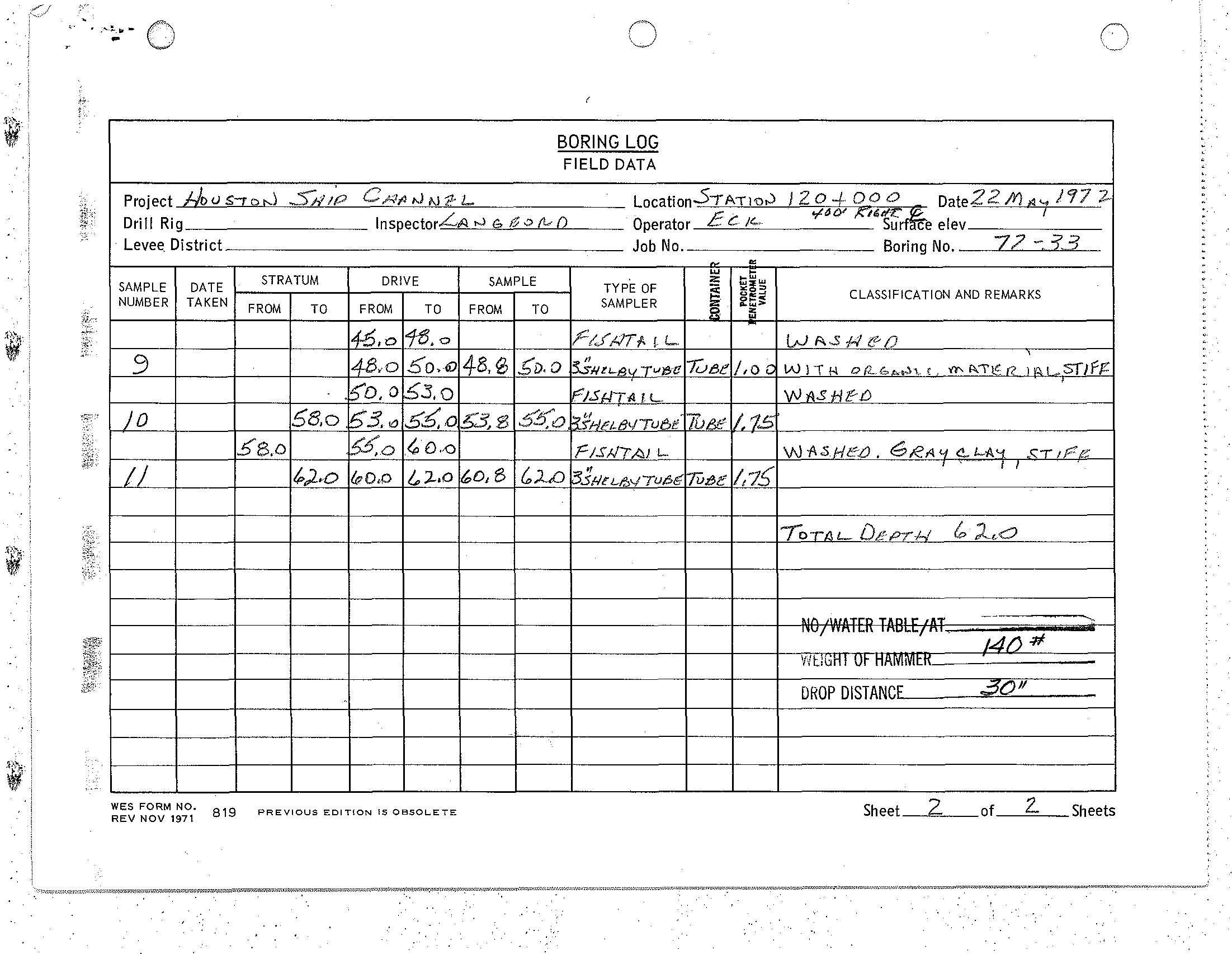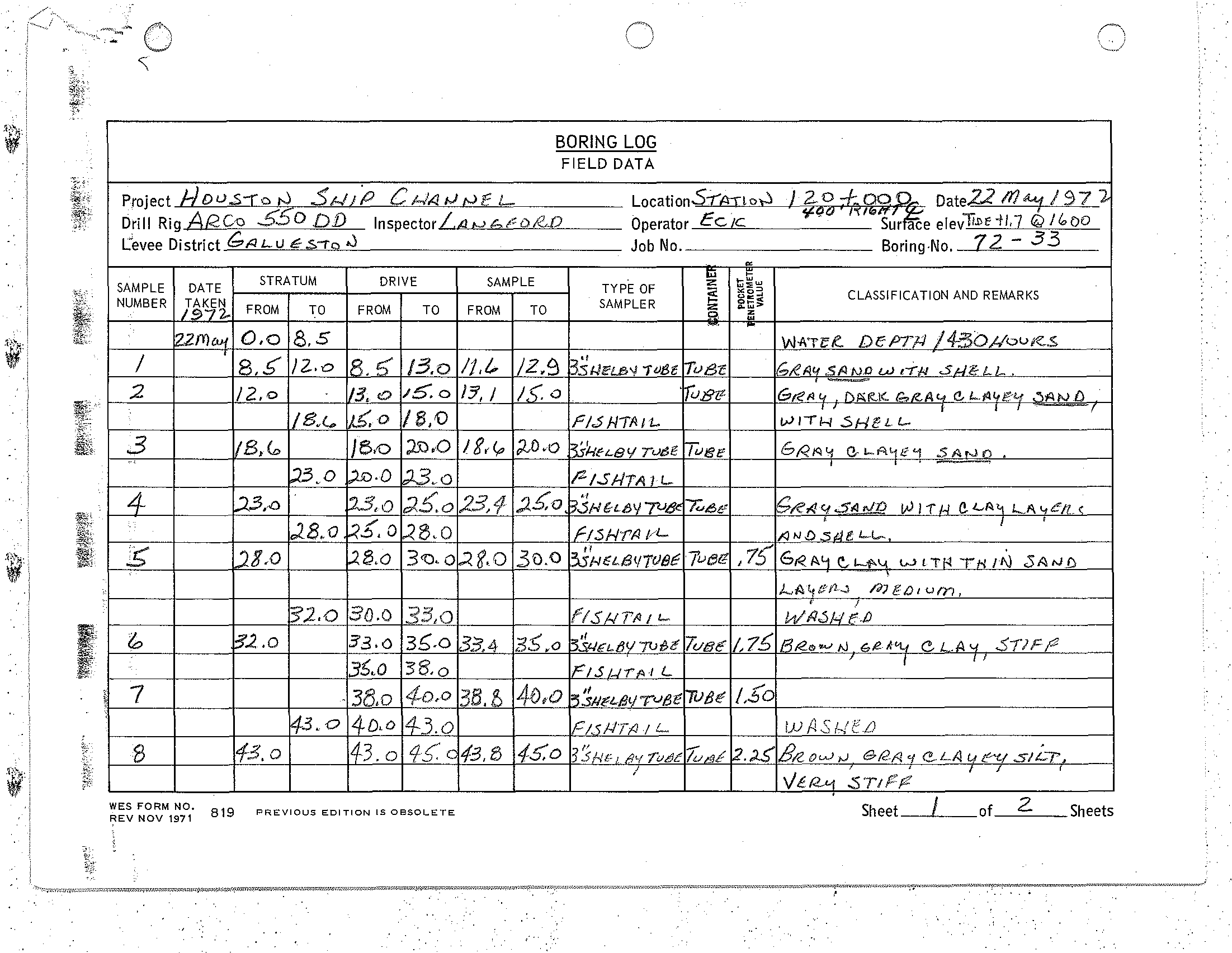ELEVATION TOP BORING